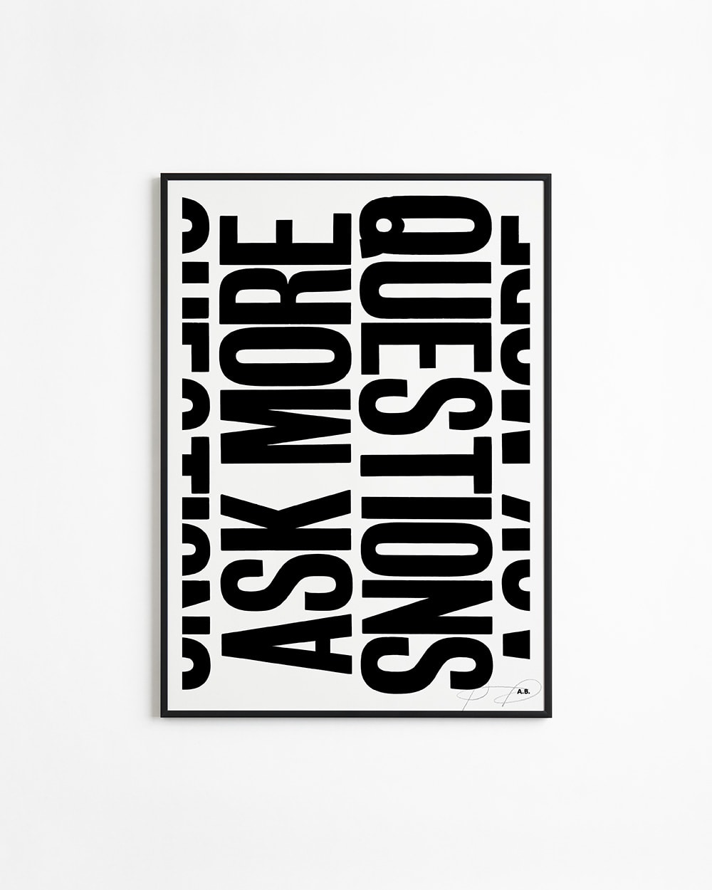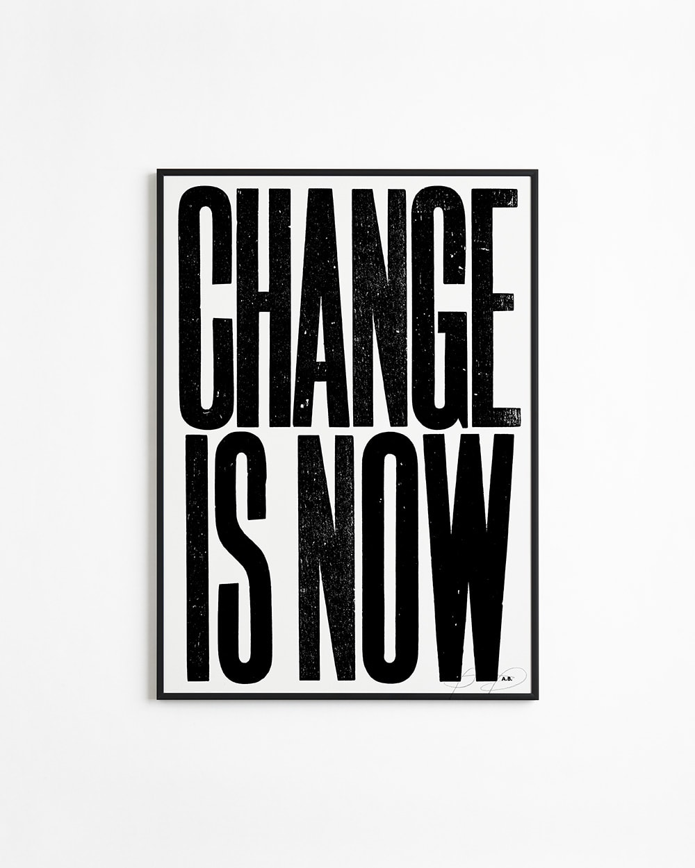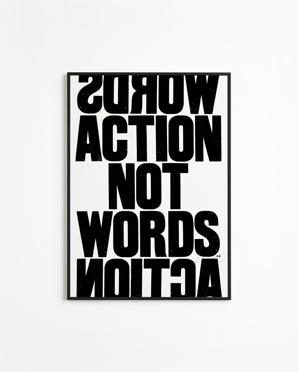 Typographic prints are at the core of Burrill’s graphic art practice. The positive messages are both a call to action and an encouragement to question the world around us. Using a pared down rigorous monochrome aesthetic and employing historic letterpress typefaces the works are both contemporary and timeless.