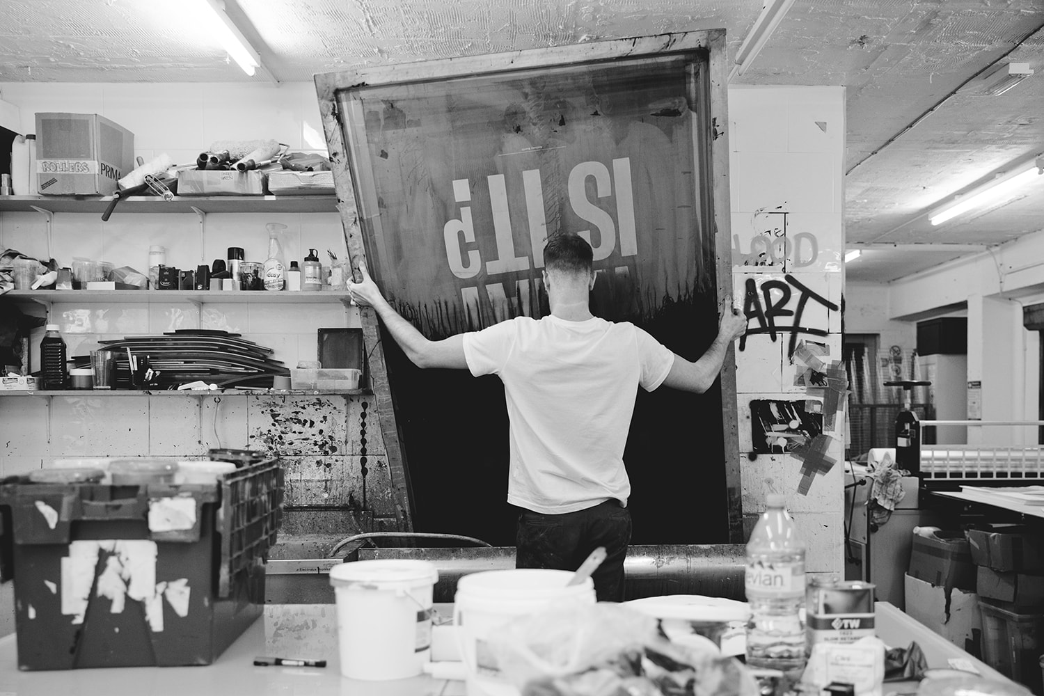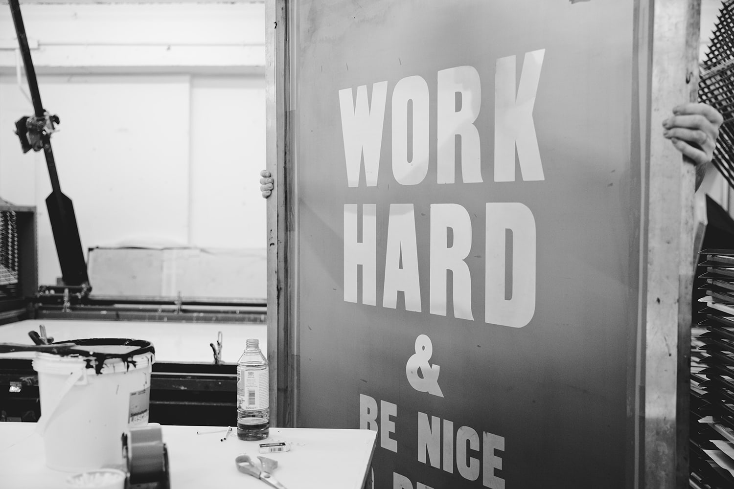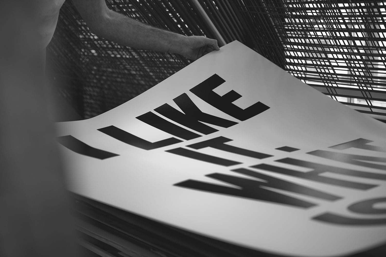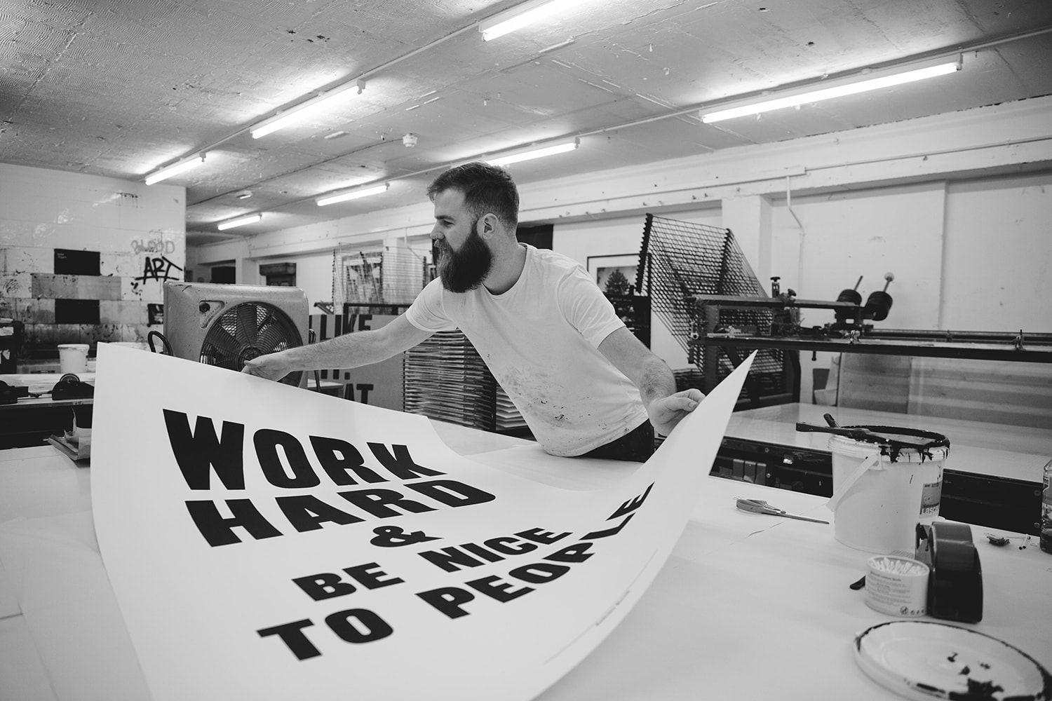 A collaboration between Burrill and Jealous fine art print studio to produce large scale limited edition screen-prints ‘WORK HARD & BE NICE TO PEOPLE’ and ‘I LIKE IT. WHAT IS IT?’