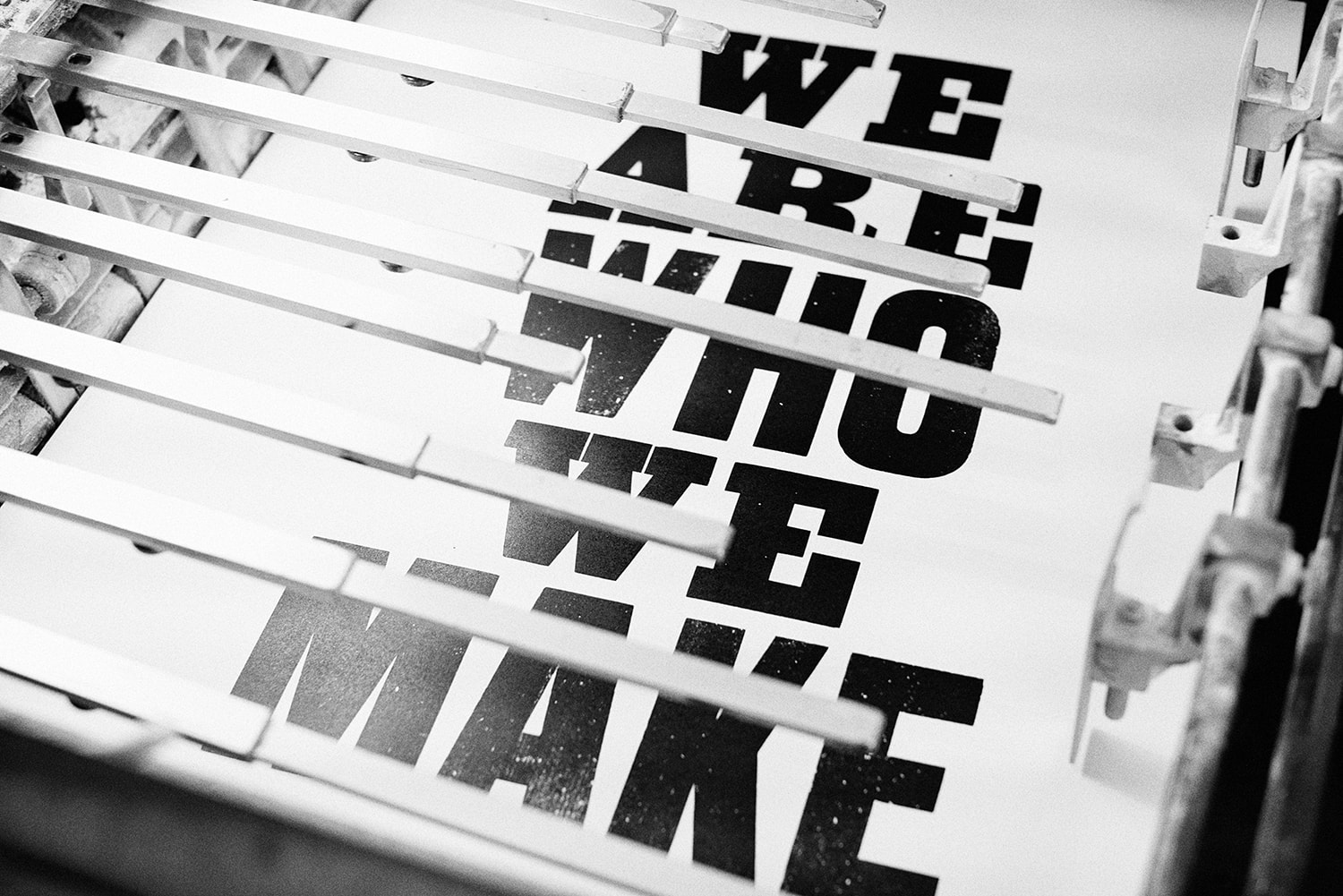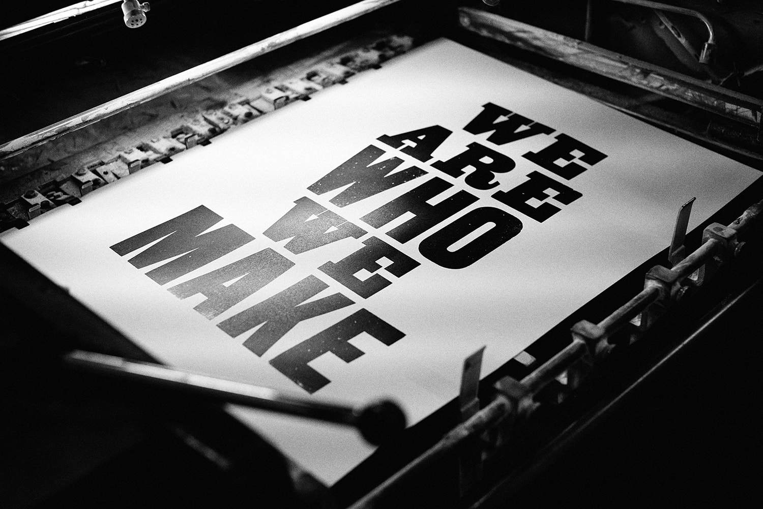 Since 2004 Anthony Burrill has worked closely with Adams of Rye on an ongoing series of woodblock posters. Adams continues to use letterpress and wood type, some of which the firm have owned for over a hundred years.