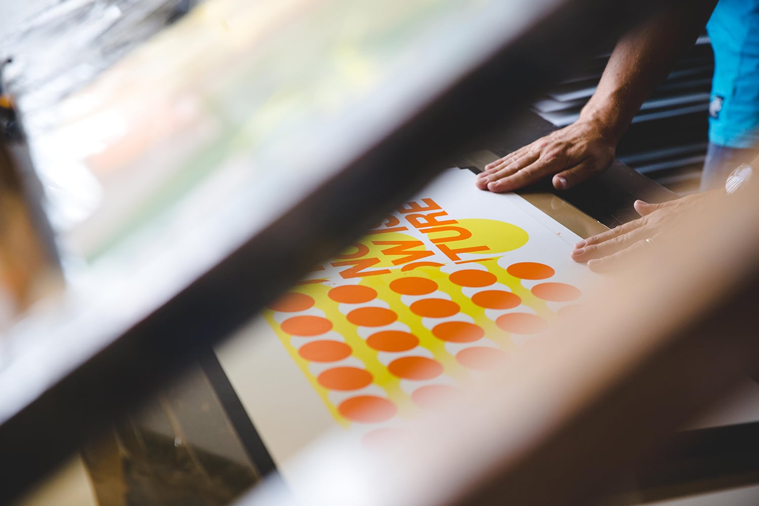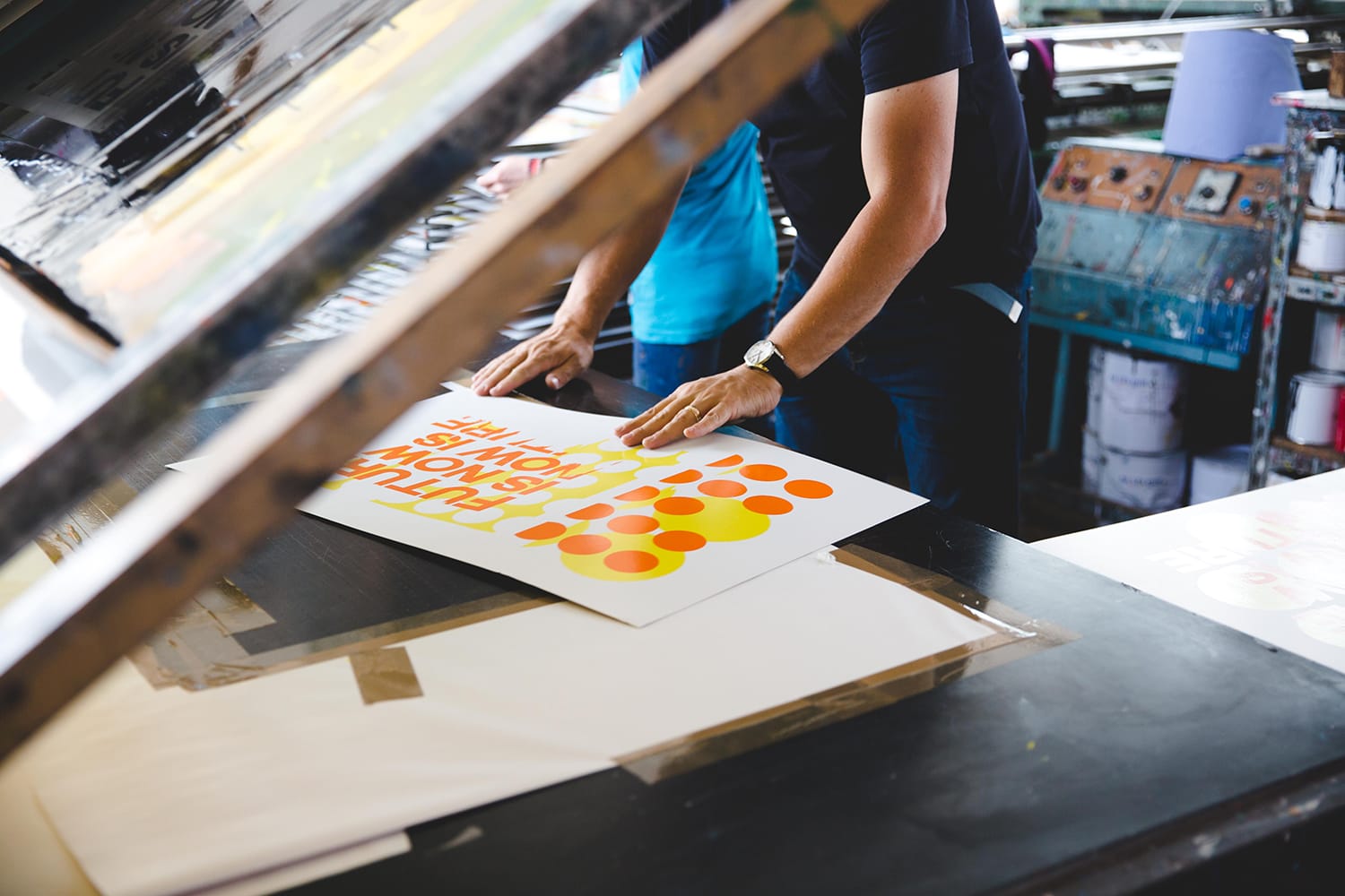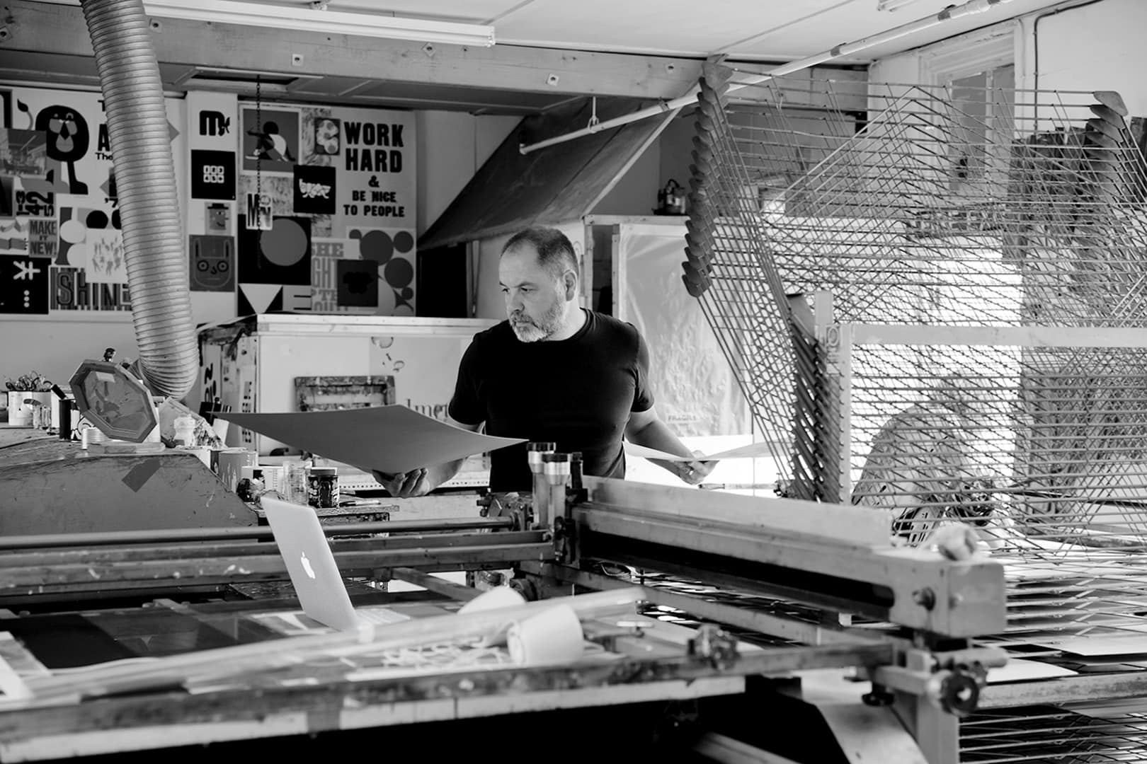 Anthony Burrill has collaborated closely with Harvey Lloyd in Wadhurst, East Sussex since 2006 producing numerous editions exploring the boundaries of screen-print using unorthodox approaches and materials.
