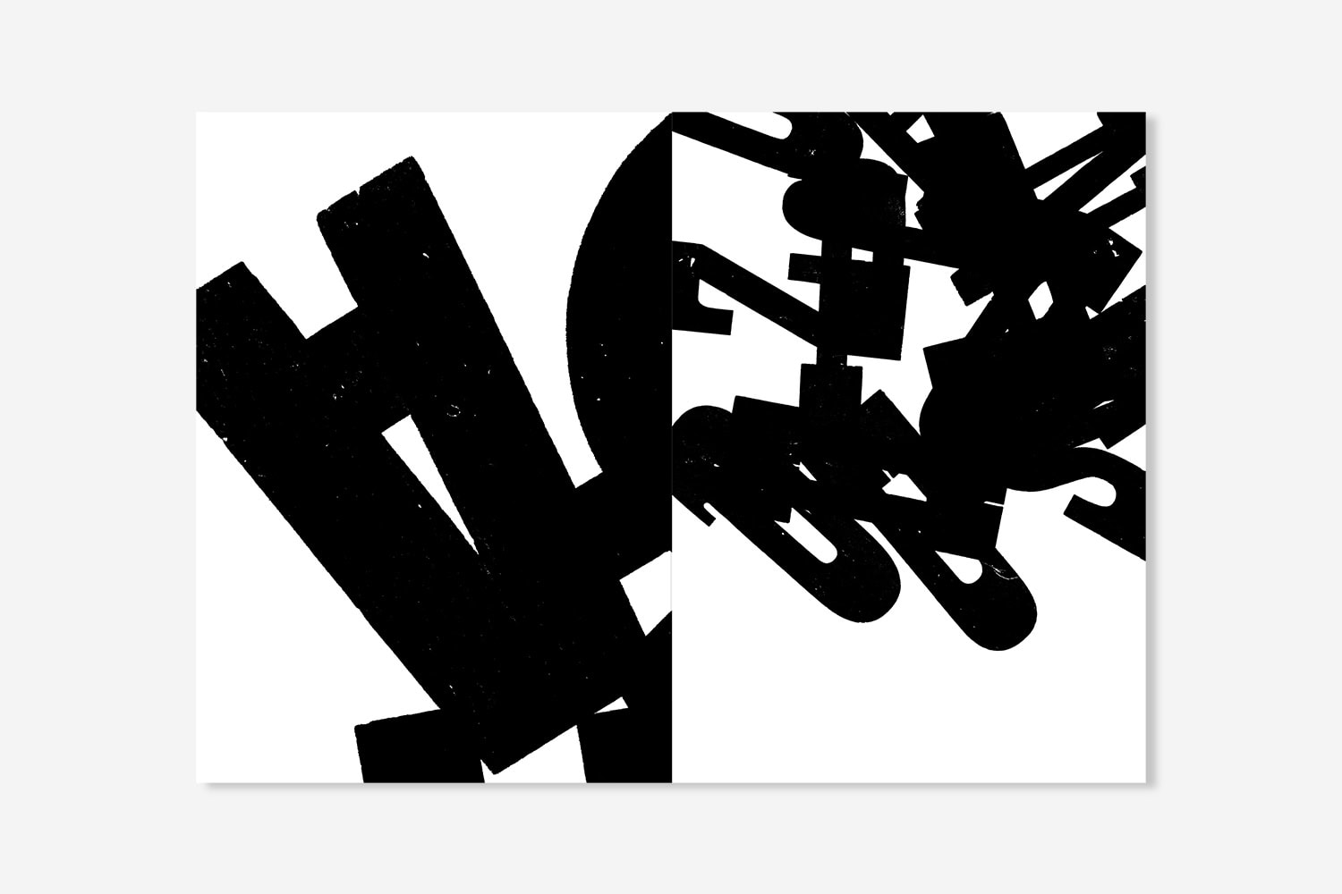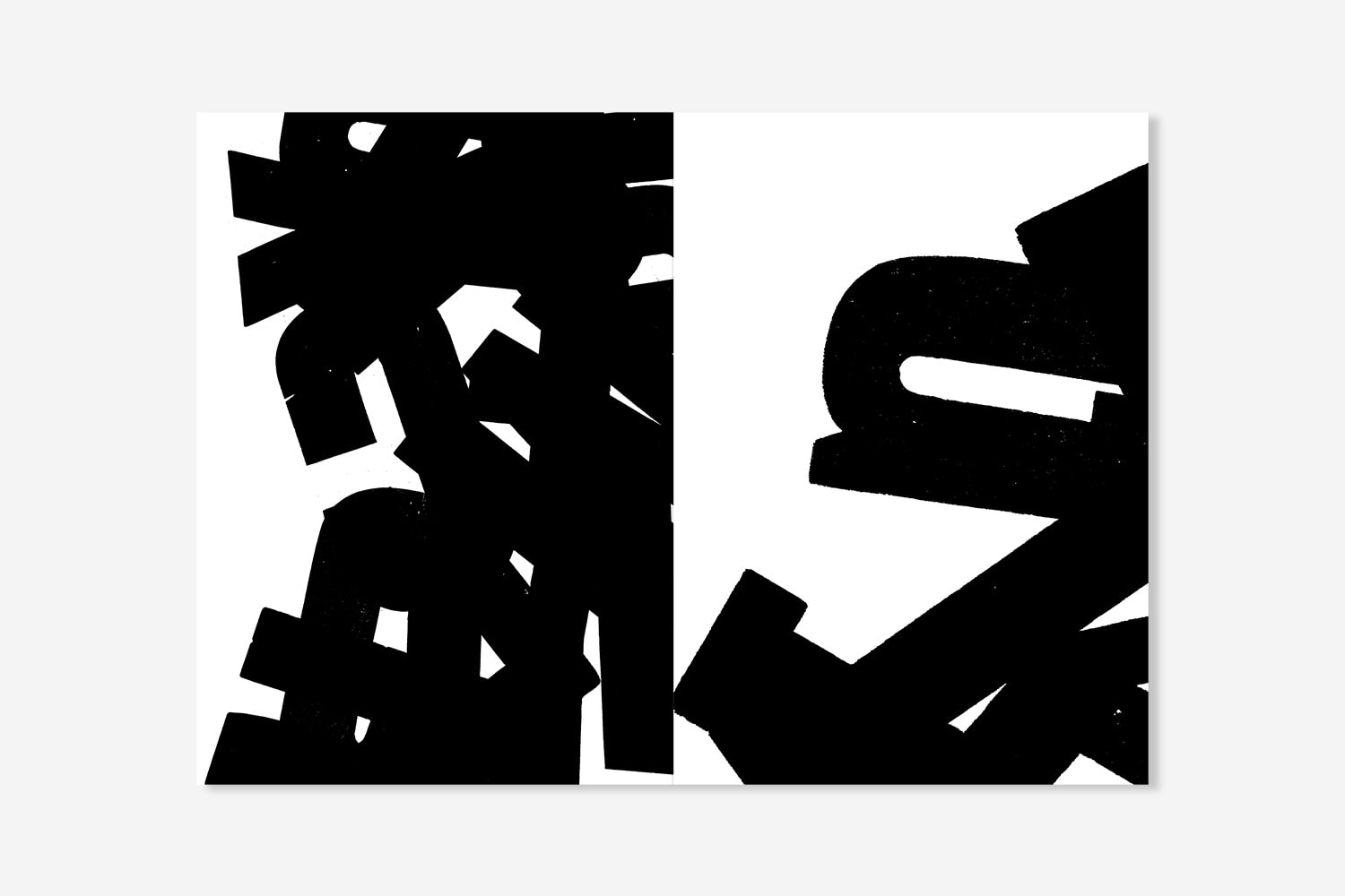Burrill and Tickler share an interest in type and its inherent abstract qualities. The duo discussed ways of utilising historic letterforms and coding to produce an automatic compositional system. The resulting publication questions typography and explores its use as an image making tool when unbound from the restrictions of language.